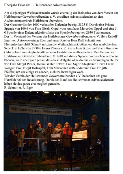 | So. | 10.12.2017 | 00:00 | Weihnachtsmarkt | Erlös übergabe Advendskalender |
